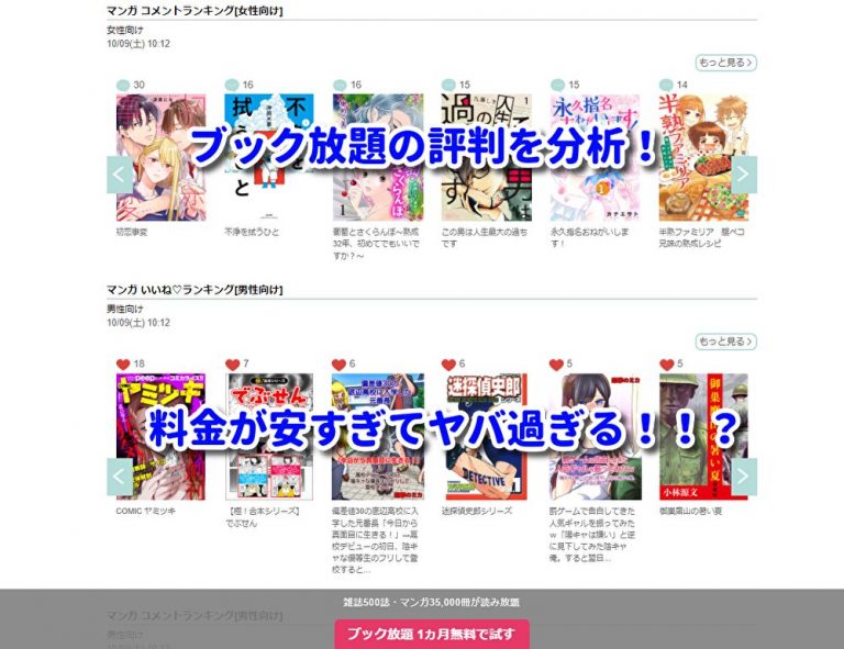 色んな評判があって判断が難しい人のために、実際の利用者の評判・口コミと漫画のラインナップからブック放題を分析し解説していきます。